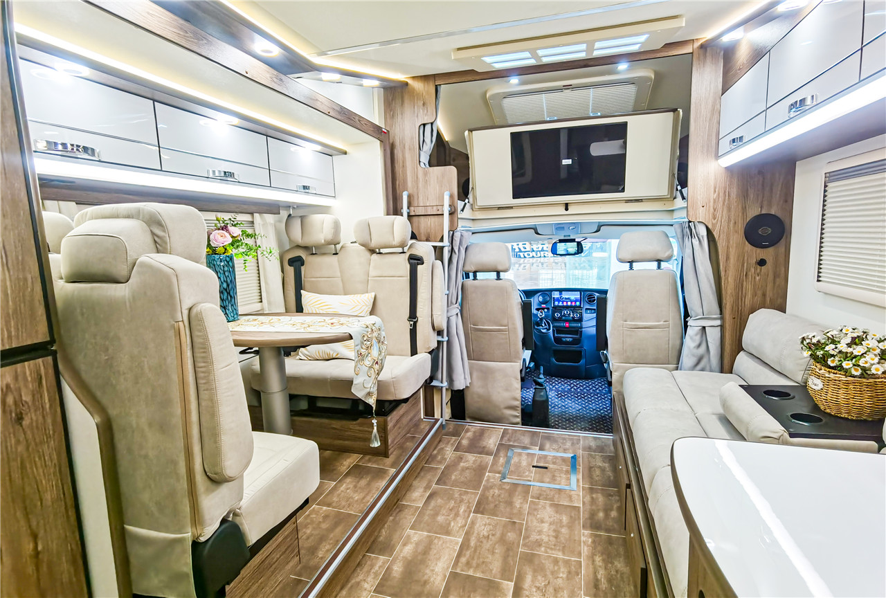 | 正副駕駛椅包 (中間菱形格) | 豪華衛(wèi)浴間 (ABS吸塑工藝) | 升降桌板(進(jìn)口單腿) | ||||